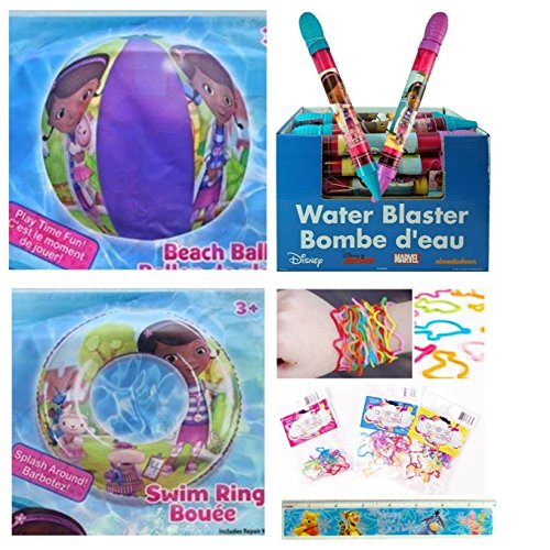 -. Brand : UltimateGifts -. Color : Disney Doc McStuffins -. EAN : 0749357609268 -. Feature : Set of 3 inflatable pool toys for kids + Disney ruler + 12-pack silicone bracelets / Authentic licensed Disney pool toys / Great swimming set for your Disney/Marvel fan! / Use as party favors for your kiddie pool party. -. Label : UltimateGifts -. Manufacturer : UltimateGifts -. PackageQuantity : 1 -. ProductGroup : Lawn & Patio -. ProductTypeName : OUTDOOR_LIVING -. Publisher : UltimateGifts -. Studio : UltimateGifts -. Title : 5 Items: Disney Doc McStuffins Inflatable Pool Toys for Kids (3 Pieces) + Disney Ruler + 12-pack Silicone Bands: Beach Ball (14"), Swim Ring (17"), and Water Blaster Squirt Gun (12") -. UPC : 749357609268