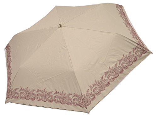-. Title : ヒュッゲ カラーコーティング 裾ペイズリー&ヒートカット ミニ 全3色 折りたたみ傘 手開き 日傘/晴雨兼用 6本骨 50cm 軽量 木製ハンドル