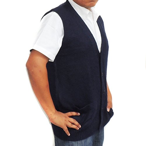 (CELITAS DESIGN)/Men/Sweaters/DIRECT FROM USA/Vest alpaca and blend V neck buttons made in Peru Navy Blue