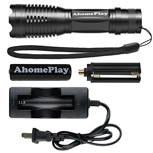 -. Title : AhomePlay Waterproof Tactical Flashlight - CREE XP-G R5 LED, 300 Lumen, 1 Mode, Adjustable Focus, Rechargeable 18650 Battery and Charger Included - UV Light