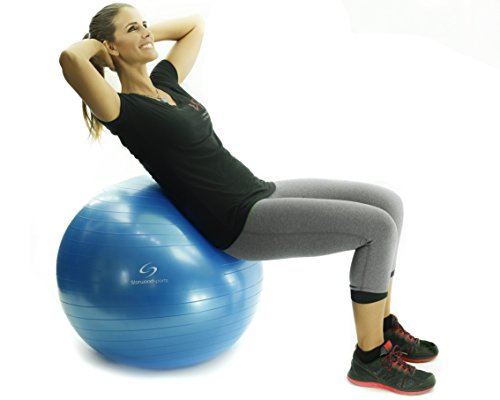 INCLUDES HAND PUMP AND EXERCISE CHART – Everything you need to immediately begin benefiting from use of your exercise ball is included in the box - A lightweight, portable hand pump, plug and an exercise chart with a few ideas to help get you started