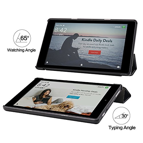 CTsing Case for Amazon Fire HD 8 (2016 Release, 6th Generation)-Trifold stand, Auto Wake/Sleep CoverSlim Fit Premium Vegan Leather Standing Cover Auto Wake/Sleep for Fire HD 8 Table,Black