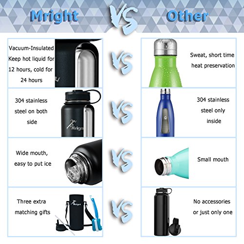 - DURABLE AND SAFE:Made of High-quality food grade 304 (18/8) stainless steel on both inside and outside walls, scratching resistance, 100% non-toxic BPA Free for heath-safety. Preservative and rustproof function keep long using time. Proprietary powder coat for an easy-grip, sweat-free, extra-durable bottle which you can take with to go hiking or play sports.