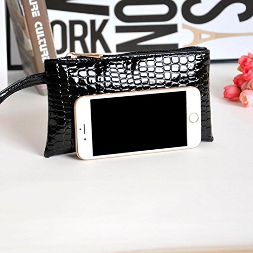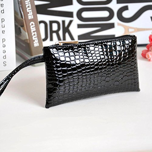 Title : Gotd Women Crocodile Leather Clutch Handbag Bag Coin Purse Wallet Zipper Open (Black)
