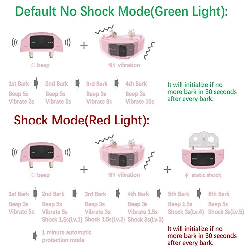 4. Use "beep vibration" mode as daily training, "Shock" function is optional, If needed, one button switch to "beep vibration shock" mode