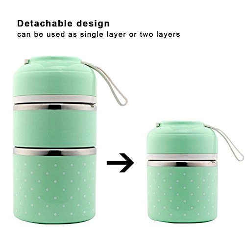 - PORTABLE AND CONVENIENCE: From soup at work to fresh fruit and nuts on a hike, these are the best food storage containers for work ,school,take-out food carrying, camping or enjoying any hot or cold meal on the go.And the stacking design just give you great choice to decide take single layer or 2 layers to go.Easy to clean and dishwasher safe.