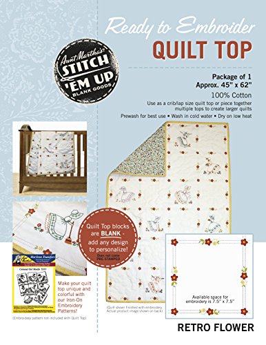 Aunt Martha's Stitch 'Em Up Ready to Embroider Quilt Top, 45 by 62-Inch, Retro Flower