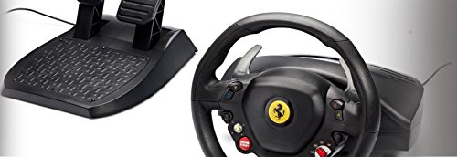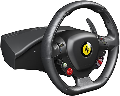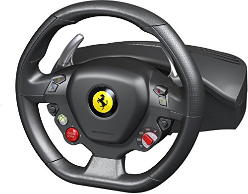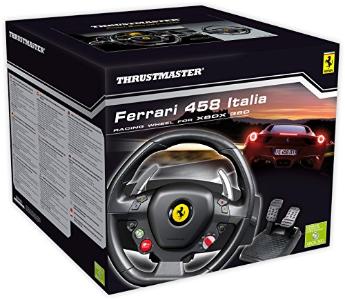 -. Binding : Video Game -. Brand : ThrustMaster -. EAN : 2000000230139 -. ESRBAgeRating : Everyone -. Feature : The world's first wheel with official licenses from Ferrari® and Microsoft Xbox 360® / Replica of the wheel on the latest Ferrari 458 Italia, star vehicle of Forza Motorsport® 4! / 11" XXL size (7/10ths of the original) with rubber texture cladding for optimal handling on Xbox 360®. / Wheel-mounted sequential gearbox: 2 Ferrari GT-style metal paddle shifters. / Pedal set featuring pedals with long range of travel, plus realistic resistance and angle -. Format : CD-ROM -. Genre : action-games -. HardwarePlatform : Xbox 360;6306200 -. IsAdultProduct : 0 -. IsAutographed : 0 -. IsEligibleForTradeIn : 1 -. IsMemorabilia : 0 -. ItemPartNumber : 4460094 -. Label : Thrustmaster VG -. Manufacturer : Thrustmaster VG -. Model : 4460094 -. MPN : 4460094 -. NumberOfItems : 1 -. OperatingSystem : Xbox 360 -. PackageQuantity : 1 -. PartNumber : 4460094 -. Platform : Xbox 360 / Windows -. ProductGroup : Video Games -. ProductTypeName : VIDEO_GAME_ACCESSORIES -. Publisher : Thrustmaster VG -. ReleaseDate : 2011-10-31 -. Studio : Thrustmaster VG -. Title : Thrustmaster Ferrari 458 Racing Wheel for Xbox -. UPC : 088037857712 -. Warranty : Comes with Manufacturer Warranty.