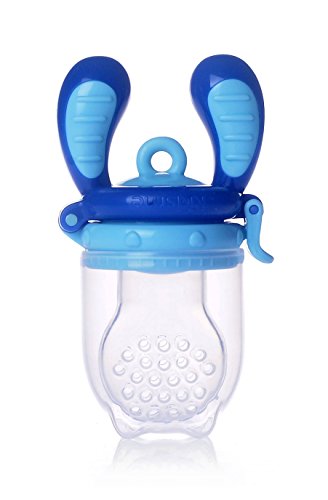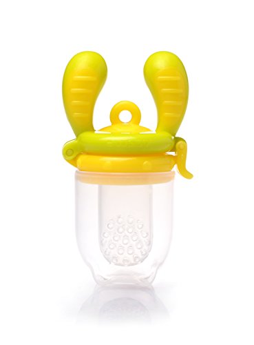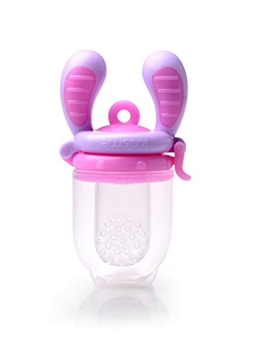 This award-winning product provides a safe and easy way for your child to enjoy fresh food and nutrients at an early age without the risk of choking. Convenient, Hygienic, and Comfortable. It is ideal for babies and mommies on the go. Simply put fruit, vegetables or meat into the silicone sac and shut the snap lock. The Food Feeder helps to encourage your child to self-feed, build independence, develop confidence, improve hand-eye coordination and fine motor skills. Your child will feel excitement and accomplishment, as they initiate and actively participate in the feeding process. The Kidsme Food Feeder with uniquely designed textured silicone sac can also help soothe teething pain and provide extra stimulation to a baby's gums when teething. Try frozen fruit or ice cube to help soothe and massage baby's gums. The patent pending soft silicone sac feeder improves from the traditional mesh bag, it makes for easy cleaning, does not retain odors, and encourages chewing to extract food. The naturally-shaped silicone sac is comfortable and familiar to your baby when compared to other food feeders made of mesh. Replacement silicone sacs are available in two sizes and can be purchased separately to accommodate your baby's growing needs. A cap helps to keep the silicone sac and food clean. This product is easy to clean and is top-rack dishwasher safe.