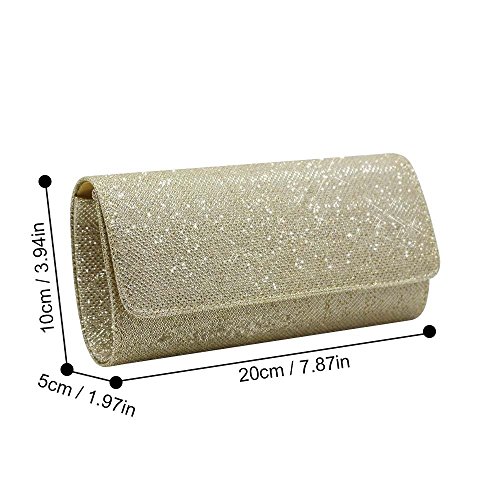 -. Brand : Nodykka -. Department : womens -. Feature : Evening purse made of man-made glitter material / Flap front with a magnetic-snap closure. / Removable metal shoulder chain, it can be held as a wallet, worn over the shoulder or across the body. / Satin lined interior with back-wall slip pocket. / Size:20*10*5cm(8.4*4*2inch) -. ProductGroup : Shoes -. ProductTypeName : HANDBAG -. Title : Nodykka Wedding Evening Party Clutch Bag Envelope Cross Body Handbag Bridal Purse