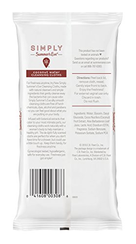 - Made with simple ingredients that gently remove the bacteria that can cause odor, Simply Summer’s Eve silky smooth cleansing cloths are free of harsh chemicals, dyes, alcohol and parabens - so you can feel good about what you are putting on your body