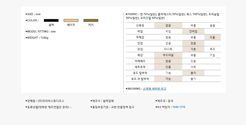 특이 사항 배송, 변경, 반품 환불에 대한 문의는 위 연락처로 문의 주세요.