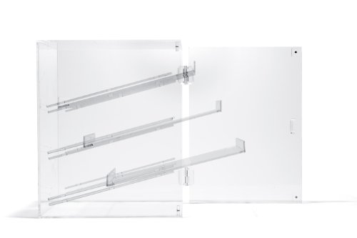 - Feature : Crystal clear acrylic display case with three removable acrylic trays / Magnetic snap door / All edges shiny polished, acrylic hinges and clear bumpons / Overall dimension: 11"W x 15"H x 12"D / German quality, handmade in Brooklyn, NY
