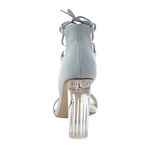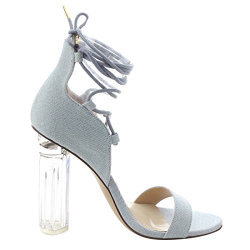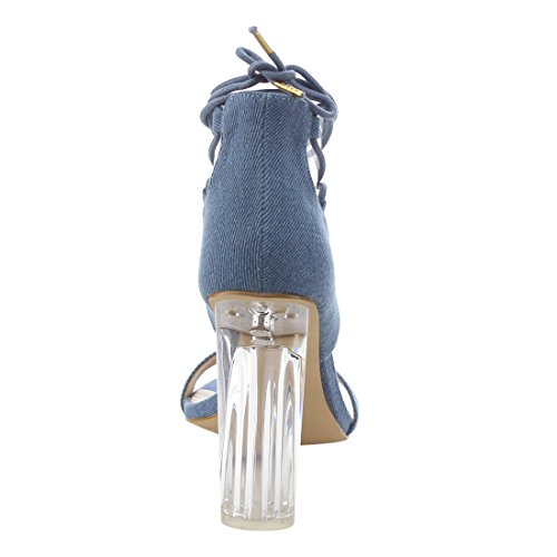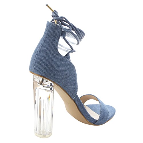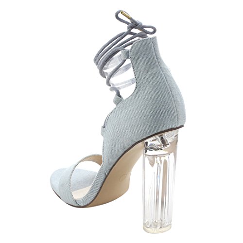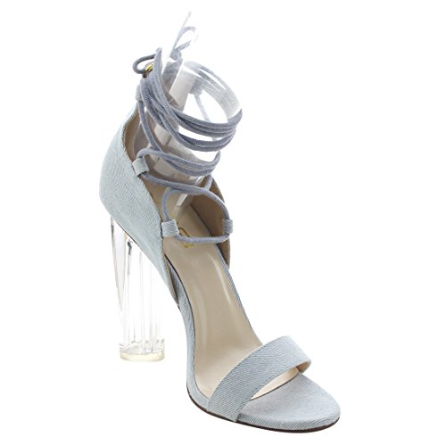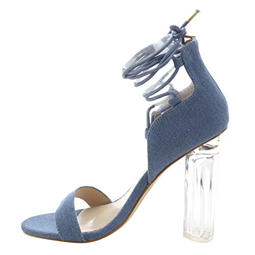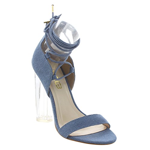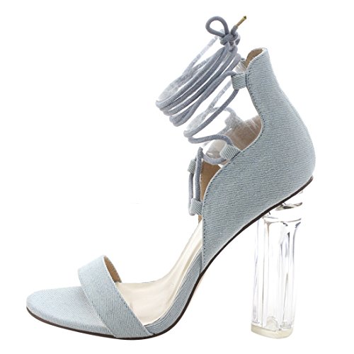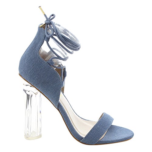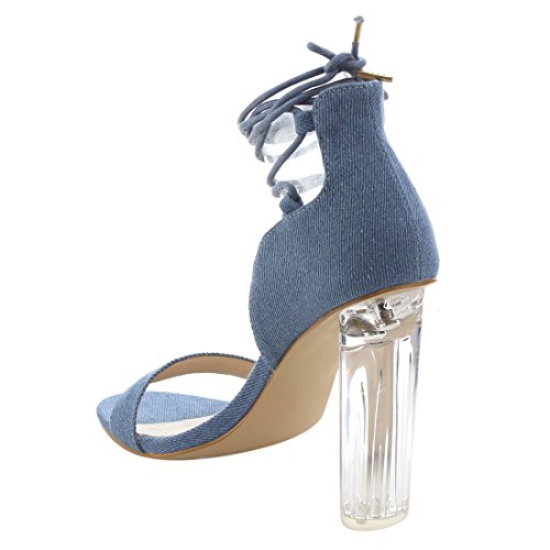 X2B FJ91 Women's Chunky Clear Heel Single Band Lace Up Dress Sandals