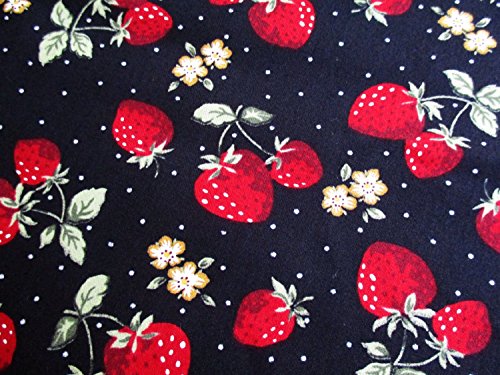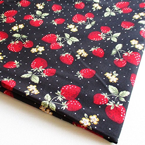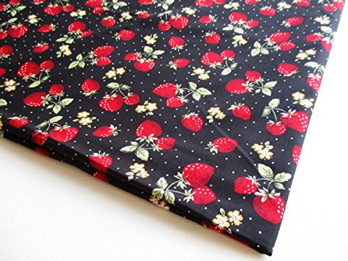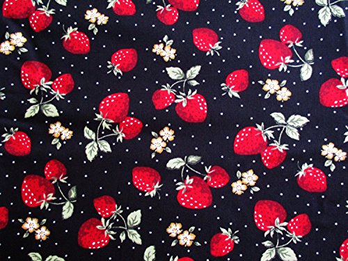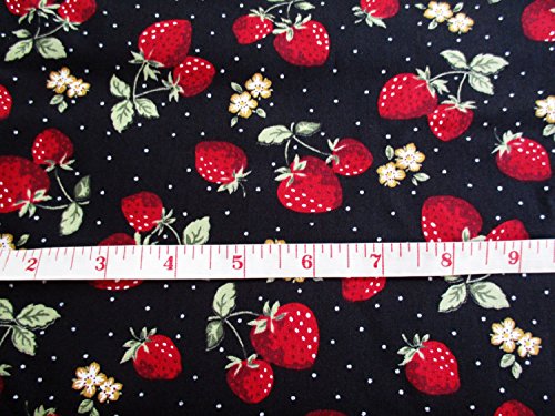 Red Green Strawberry with White Dot on Black Fabric 36 by 36-Inch Wide (1 Yard) (CT560)