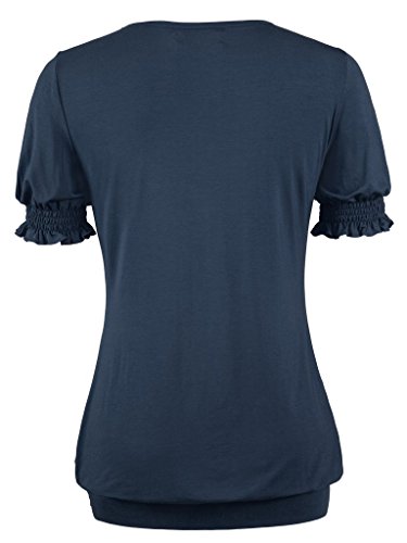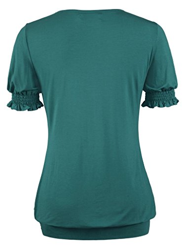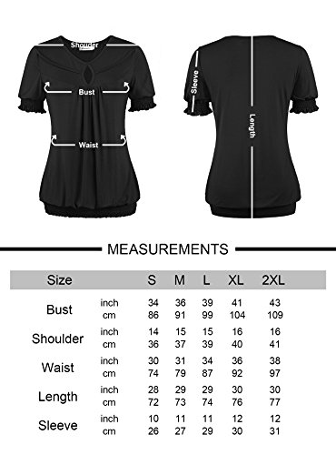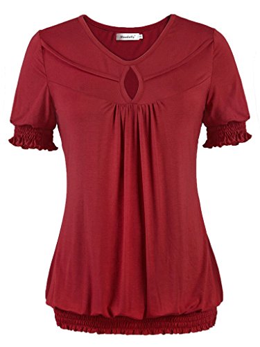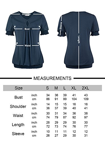 -. Feature : This shirt have different sleeve that like puff sleeve, but in the bottom of the sleeve have soft elastic with draped short sleeve, it have high elasticity, will not ting on your arm. At the same time, waist also have elastic band in the bottom with draped, that really the fashionable design in this year / This womens short sleeve tunic top by NineDaily is a very lightweight and comfortable piece that is great for casual wear. it's a flattering, casual shirt, well made; This blouse is also dressy enough to wear under a jacket or a blazer and the nice thing about this blouse is that it can serve as casual, dress up and formal depending on what you wear with it / 95% Rayon and 5% Spandex. The NineDaily fabric is very soft and lays nicely in a down flowing way. The elastic band at the bottom is not overly tight, The Front Pleated design and RAYON materials make the tee really unique and practical / When you make order, please reference the size chart, Our size is US size, this blouse have big elasticity, When you cannot make sure the size, please send message to us in anytime, we always here for you / Machine washable (Recommended Hand Wash), Hand Wash cold/No bleach/Lay Flat Dry