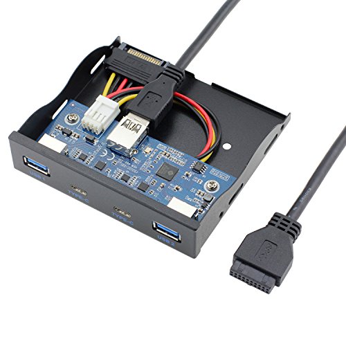 E-SDS USB 3.0 2-Ports + USB 3.1 Type C 2-Ports 3.5 Inch Front Panel USB Hub[ 20 Pin Connector & 2ft Adapter Cable]