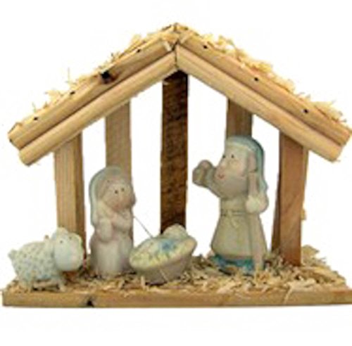 Christmas Decor Wood Stable W Poreclain Holy Family Figurines Nativity Statue