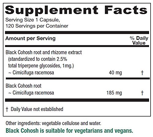 -. Binding : Health and Beauty -. Brand : Vitanica -. Color : default -. EAN : 0708118020759 -. Feature : Vitanica Black Cohosh 120 vcaps / Again, we combined the standardized extract and dried powder of the Black Cohosh root. Black Cohosh is a popular Native American and folk remedy for female ailments and menstrual cramps. / Gluten Free -. IsAdultProduct : 0 -. Label : Vitanica -. LegalDisclaimer : * These statements have not been evaluated by the FDA. This product is not intended to diagnose, treat, cure or prevent any disease. -. Manufacturer : Vitanica -. Model : 708118020759 -. MPN : 708118020759 -. PackageQuantity : 1 -. PartNumber : 708118020759 -. ProductGroup : Health and Beauty -. ProductTypeName : HEALTH_PERSONAL_CARE -. Publisher : Vitanica -. Size : 120 -. Studio : Vitanica -. Title : Black Cohosh - 120 - Capsule -. UPC : 708118020759