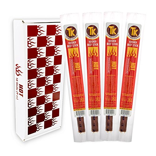 Tomer Kosher Pack of 10, Beef Sticks, 100% Angus Chuck, Gluten Free, Hot, 0.9 oz.