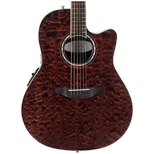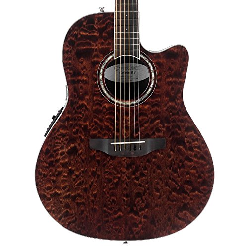 Studio : Ovation Guitars Publisher : Ovation Guitars Binding : Electronics Product Description The Celebrity Standard Plus series is your first step into the world of Ovation, with select figured tops, beautiful abalone appointments and first-rate sound, features and value. The Celebrity Standard CS28P-TGE guitar has the classic Super Shallow bowl Lyrachord cutaway body with a striking Figured Koa top featuring quarter sawn scalloped “X” bracing. We reviewed earlier Ovation bracing patterns extensively to arrive at this remarkable new design, which borrows from the past and is voiced for the present with natural tone and optimal response and power. Together, the body and top create the classic Ovation sound, resonating with full projection, remarkable note clarity and balance, and nuanced tonal complexity. The Quilted Maple top also has an elegant abalone rosette, ivory white binding and beautiful Natural gloss finish. Other premium features include an effortlessly playable neck with a natural satin finish and rosewood-veneer headstock, 20-fret bound rosewood fretboard with abalone microdot inlays, and a rosewood bridge. For great live sound, the CS28P-TGE features an Ovation Slimline pickup and OP-4BT preamp system with three-band EQ, volume/gain control, onboard tuner and low-battery light. 0