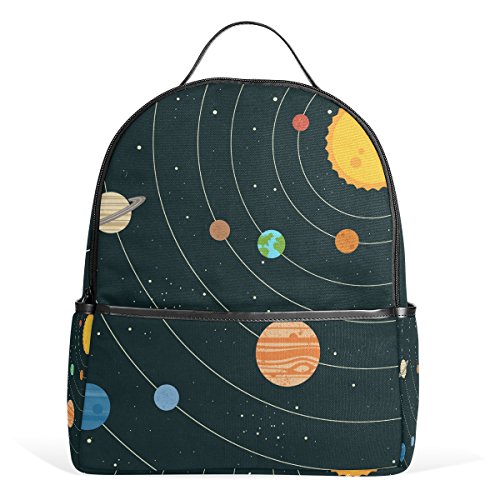 -. Brand : LORVIES -. Color : Multi -. Department : unisex-baby -. EAN : 6427024617603 -. Feature : Made of high quality Polyester material,lightweight and durable. / Approx. Dimensions: 12.6"×5"×14.8", Ages 5+ / Eco-Friendly Print / 1 zippered main top compartment with sleeves and zipper pocket inside for organization; holds up to most 14 inches laptop; and 2 side pockets, 1 front pocket. / The padded and adjustable shoulder straps and breathable foam-padded back make sure that your child will be comfortable and able to carry those heavy books. -. NumberOfItems : 1 -. ProductGroup : Apparel -. ProductTypeName : LUGGAGE -. Size : S -. Title : LORVIES Solar System Universe Lightweight Canvas Kids School Backpack Book Bag for boys girls
