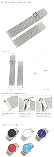 【크기】 01.스테인레스의 메쉬 벨트 버클쪽:약90mm 검처(먼저) 측:약113mm 적합폭:20mm 중량:약43g 02.블랙 03.브라운 04.화이트의 가죽 벨트 버클쪽:약85mm 검처(먼저) 측:약120mm 적합폭:20mm 중량:약19g 05.네이비×화이트 06.네이비×화이트×레드의 나일론 벨트 전장:약285mm 적합폭:20mm 중량:약13g