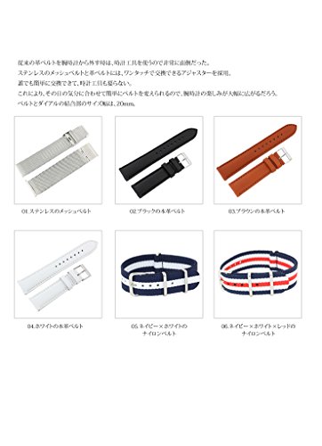 【컬러】 01.스테인레스의 메쉬 벨트 02.블랙의 가죽 벨트 03.브라운의 가죽 벨트 04.화이트의 가죽 벨트 05.네이비×화이트의 나일론 벨트 06.네이비×화이트×레드의 나일론 벨트