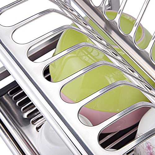 Studio : orange ant Publisher : orange ant Product Description Modern and convenience style design with this deluxe stainless steel dish drying rack. Made of high quality stainless steel,this dish rack features 2 tiers, each tier is made of metal bars arranged in an openwork pattern. The top tray has sloped sides and is ideal for holding plates, while the bottom tray is flat and can be used to hold mugs, glasses, and bowls,at the bottom of the drying rack, a metal pan with a half-inch high rim catches the water that falls from your dishes and keeps it from dripping on your counter. 0