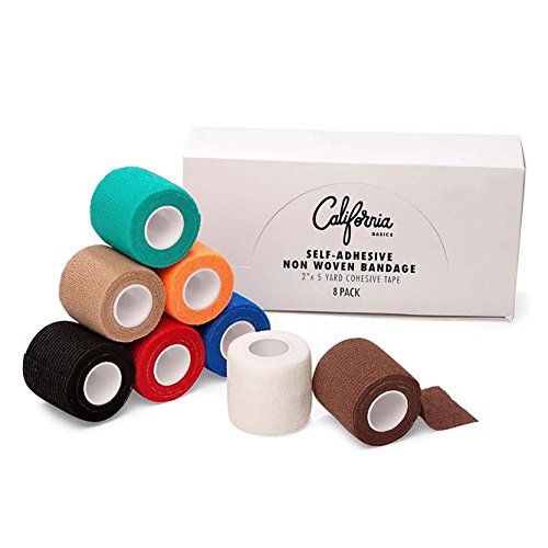 The California Basics bandage is a strong self-adherent tape that offers excellent support. It will not slip, eliminating the need for frequent readjustments. Unlike non-adhesive bandages, self-adherent tape does not require clips and pins to stay in place. Material is water-resistant and will not easily come loose by sweat or water. The stretchy elastic fabric is soft, easy to wrap, and can be torn without scissors, making it comfortable and practical to take with you anywhere. Use for sprains, swelling and soreness. Item Specifications: -8 rolls in?brown, black, teal, orange, blue, white, black -Each roll measures out to 2" wide x 5 yards long (stretched) -Self-adhesive -Sterile, and individually wrapped 0 |