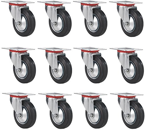 12 Pack 3" Swivel Caster Wheels Rubber Base with Top Plate & Bearing Heavy Duty