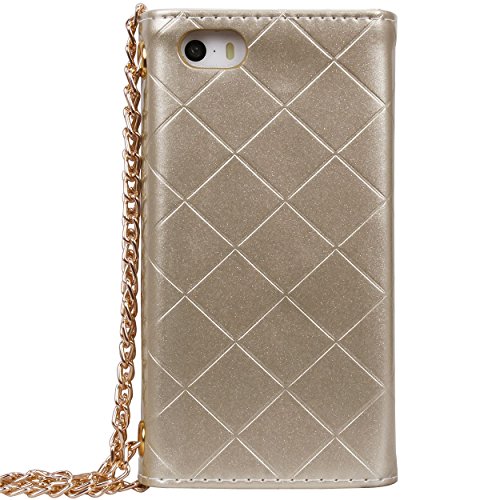 - Title : True Color® Premium Stylish Wristlet Wallet Case Cover Cross Body Chain Bag Clutch Purse for iPhone 5 5s - Gold