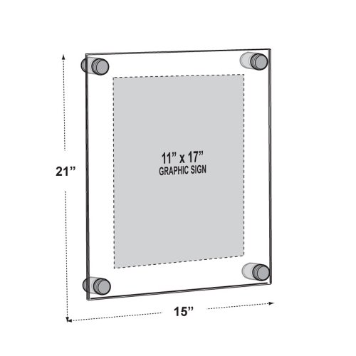 Azar 105508 11-Inch W by 17-Inch H Acrylic Sign Holder with Caps and Standoffs