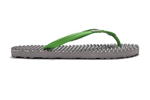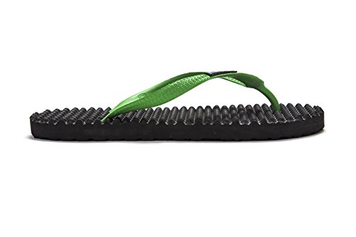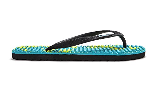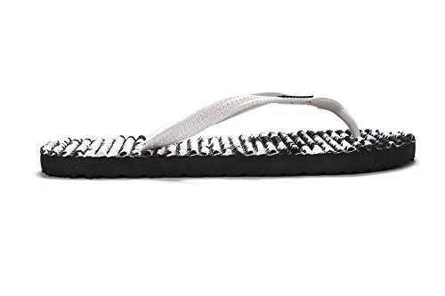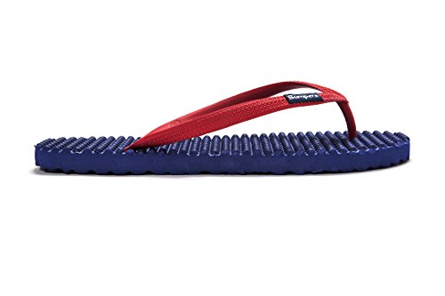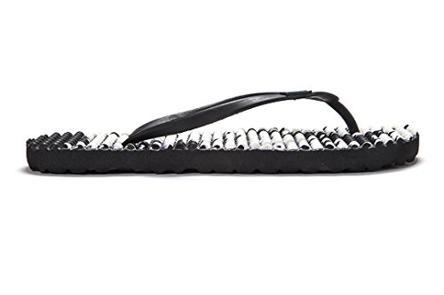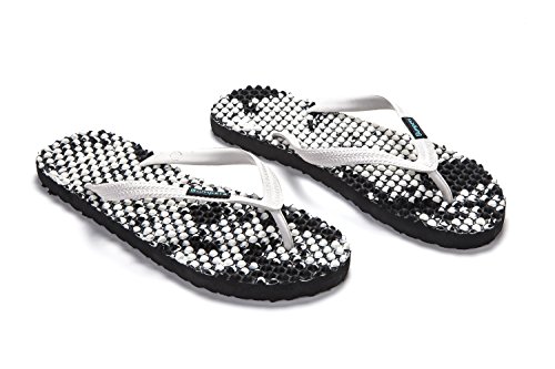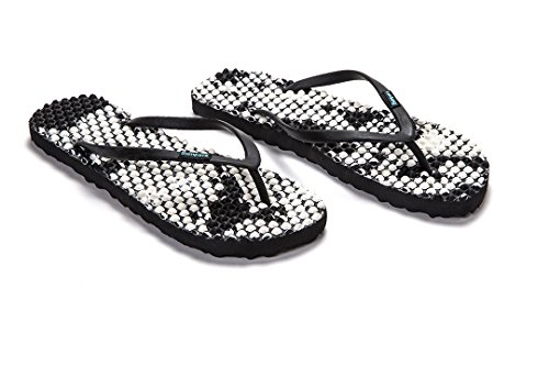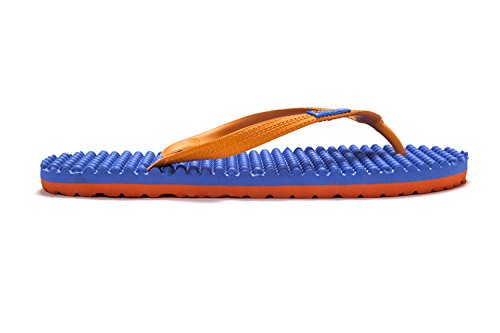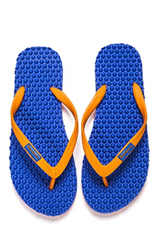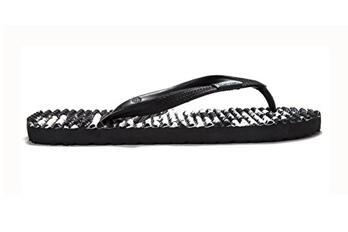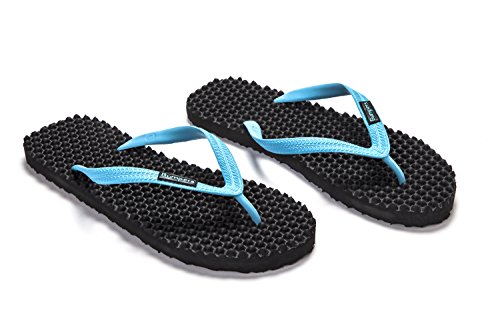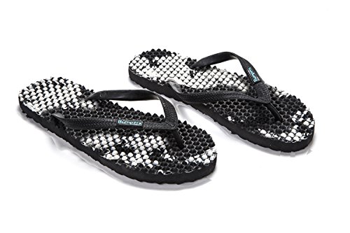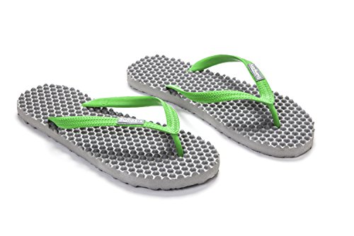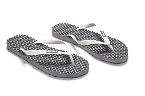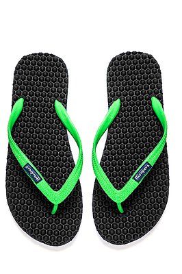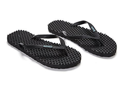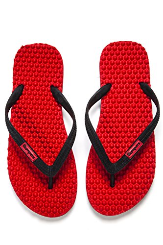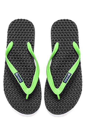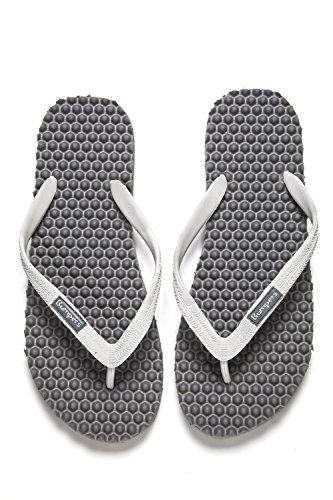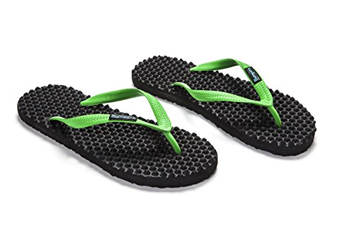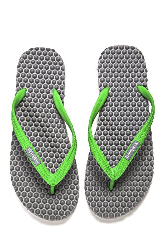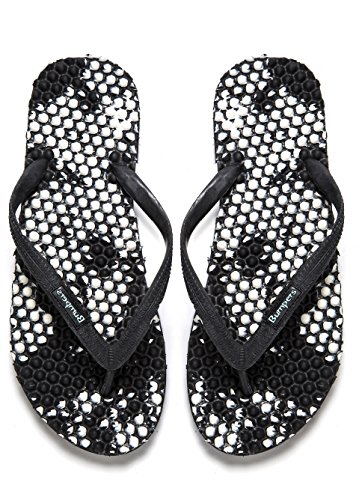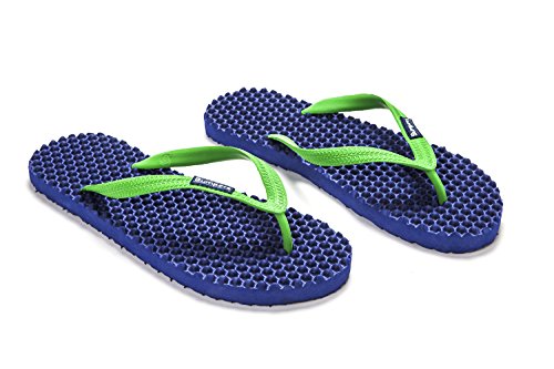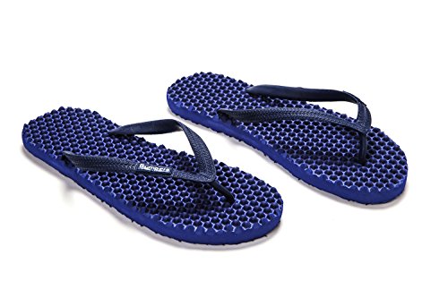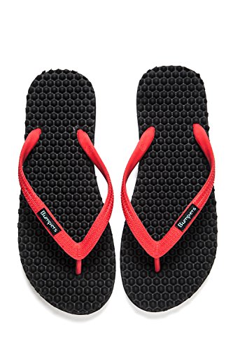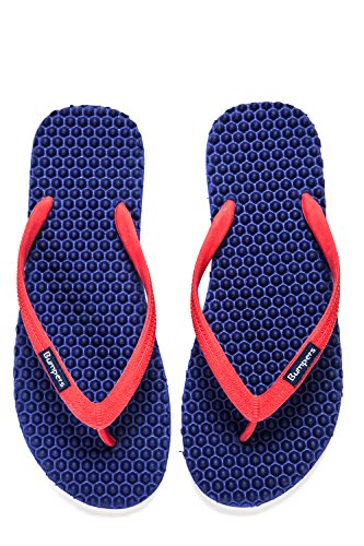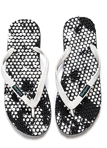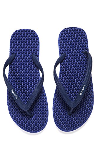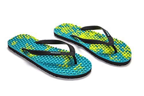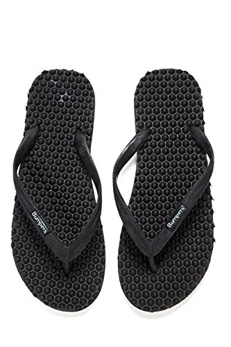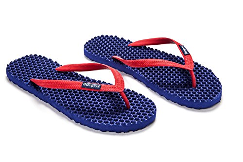 Binding : Apparel Product Description Thanks to Bumpers unique bumps structure, the flip-flops adapt your footprint as you walk, while the bumps massage your foot pressure points which increase blood flow to your feet in every step. The flip-flops bumps work on both deeper and superficial parts of the foot, creating a natural "cleaning" effect of inflammatory factors and other ailments by increased blood flow. In addition, like in reflexology and massage, an ongoing bumps contact on specific points (trigger points) of your feet, has the effect of a muscle and other soft tissues relaxation in the foot, ankle and calf muscle. These effects will particularly help ease chronic pain such as: Plantar Fasciitis, Metatarsalgia, tendon inflammation (tendinitis) and muscle inflammation of the foot and ankle. It is important to note that people who feel that the bumps pressure on certain areas of the foot are "disturbing", it is even more important that they use the flip-flops for it points to a muscle imbalance of the foot. People that encounter this issue should use the flip-flops for 30-60 minutes per day for the first 2 days and gradually increase the usage. It is expected that within 2-4 days, the pressure points will loosen, similar to a deep massage on a strained muscle. Bumpers are not only good for you, they are also good to earth. Bumpers flip-flops are made in a green process and made from natural and recycled materials only. Bumpers are created with the combination of EVA and recycled rubber, which is produced in a rubber recycling plant in Sri Lanka. All residues are sent for recycling and reuse in creating new Bumpers. The flip-flops are made with very high quality standards and meets European standards. 0
