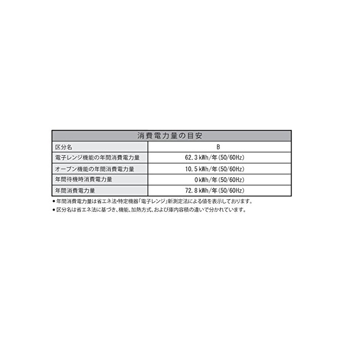 소비전력(50/60Hz):【전자 레인지】930/1350W【그릴】1250W 【오븐【1250W】 고, 대기 소비전력:0W