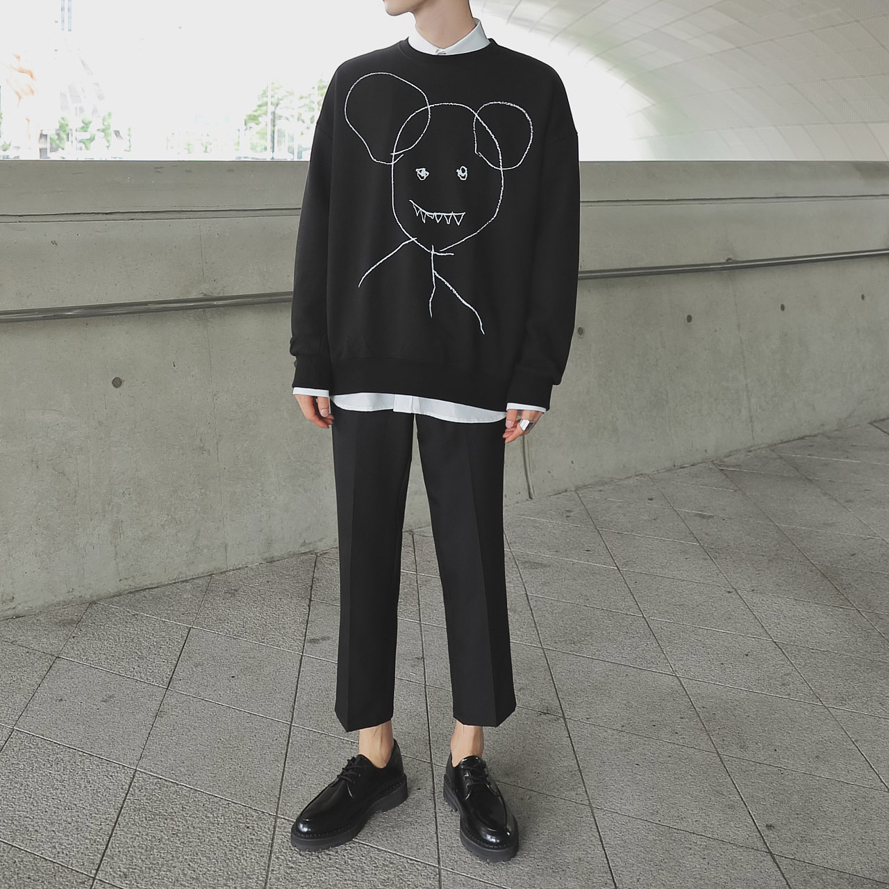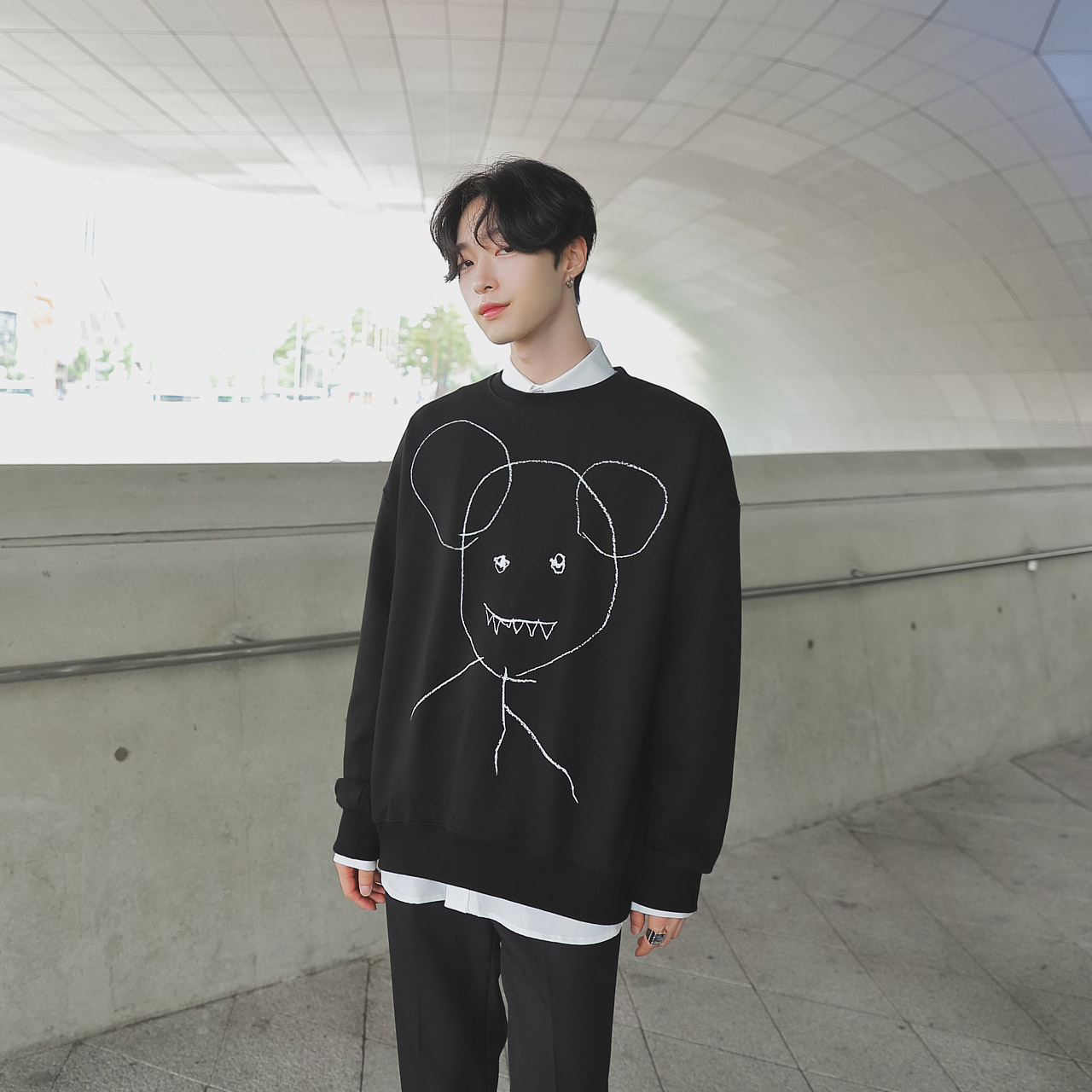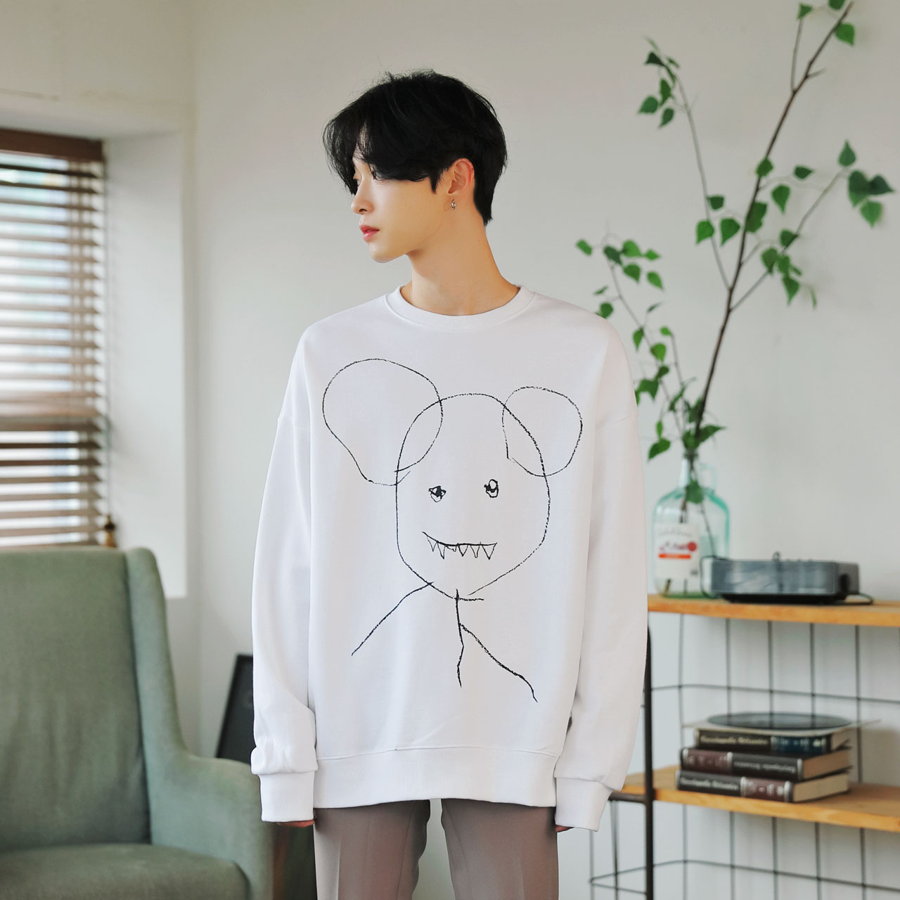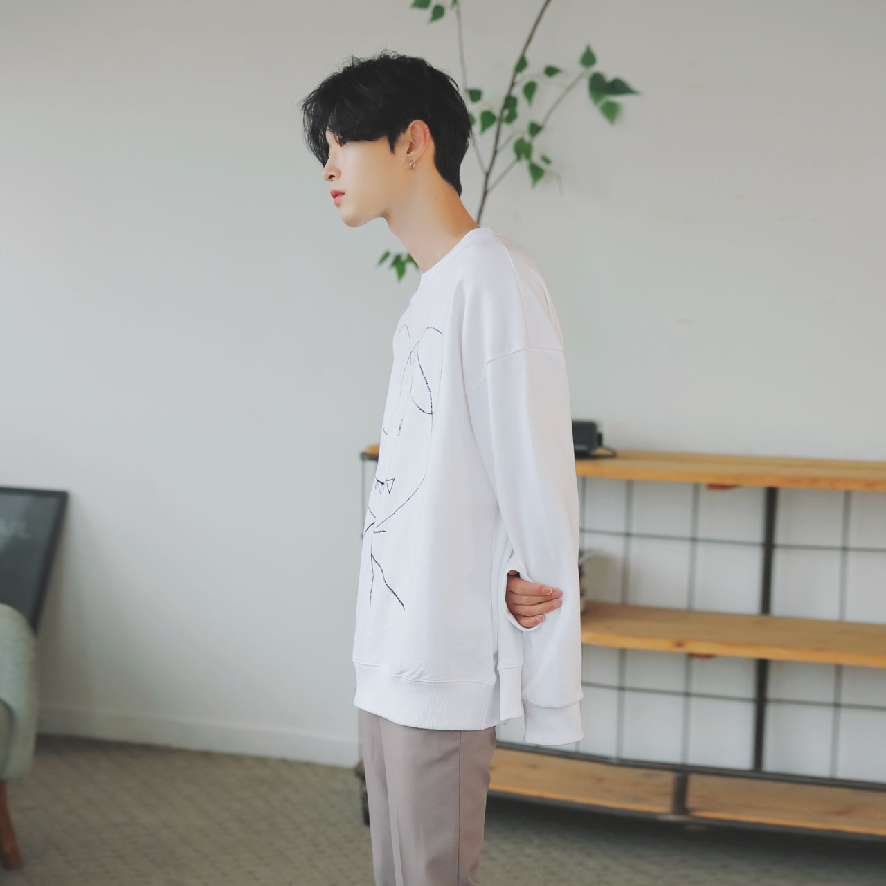 드로잉 오버핏 맨투맨