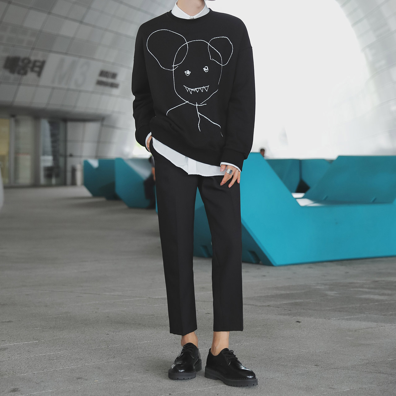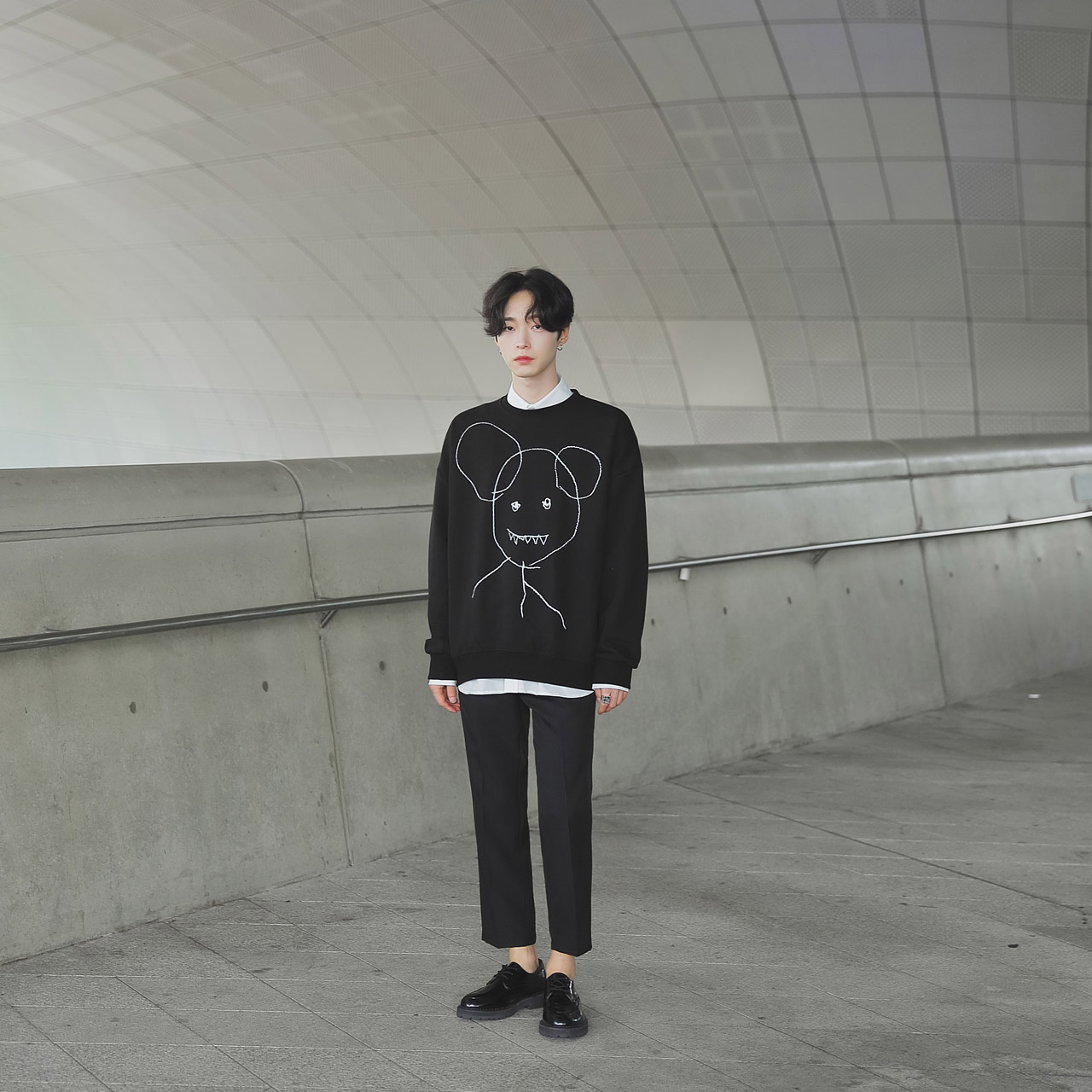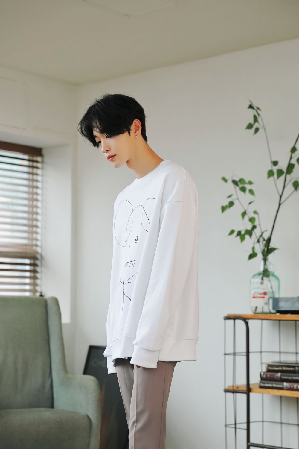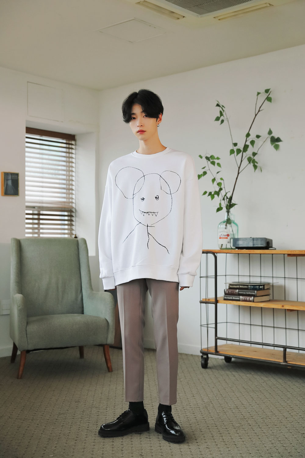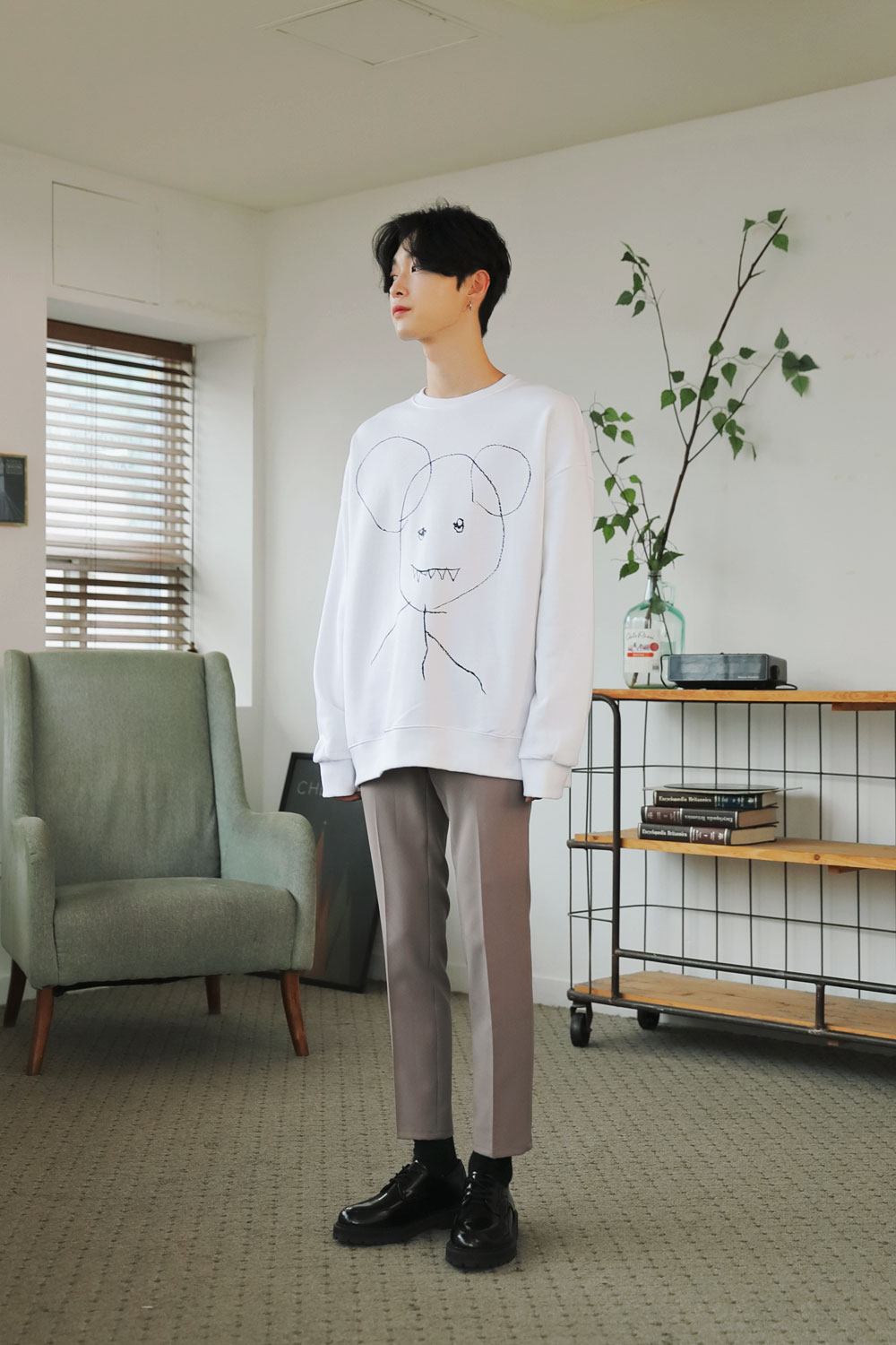 드로잉 오버핏 맨투맨