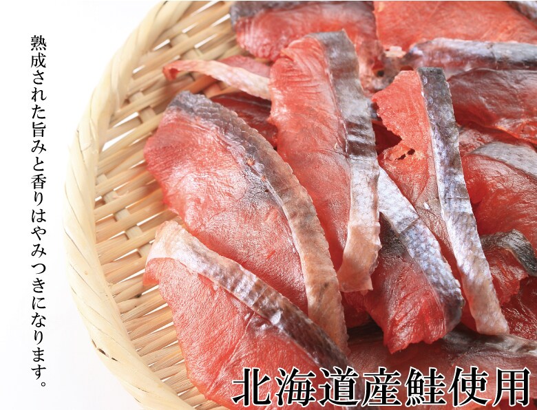 ・その他商品仕様:上質な鮭トバをスライスした本商品は、ソフトタイプなのでどなたでも食べやすいのが特徴です。そのまま食べても美味しいですが、おススメは「炙り」!当店の鮭トバは炙って食べるとさらに美味♪ぜひ炙りもお試しください!