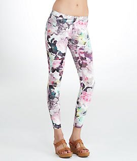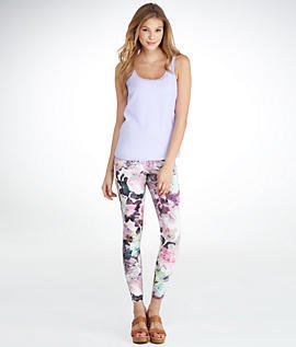 HUE Super Smooth Floral Denim Leggings, S, Sweet Lilac