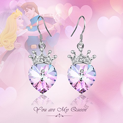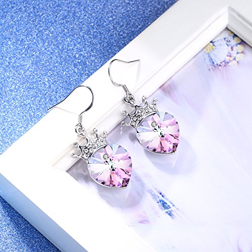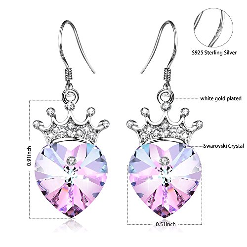 Angelady Purple Pink Crown Dangle Earrings Jewelry with S925 Sterling Silver Prong,Crystal from Swarovski Best Gift Idea *Expressing your love and best wishes to her by choosing this birthday Gift Link Bracelet.