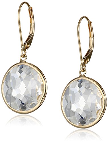 Make a statement with the 14k Yellow Gold Round White Quartz Drop Earrings. Round-shaped quartz stones add a glamorous look to any ear with these modern earrings. Each quartz stone is wrapped in 14k yellow gold to create the bezel style setting. The gold accent emphasizes the sparkle of the quartz stone, making them a fancy piece that is perfect for a party dress and some heels.Feature