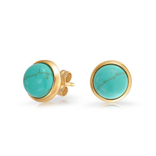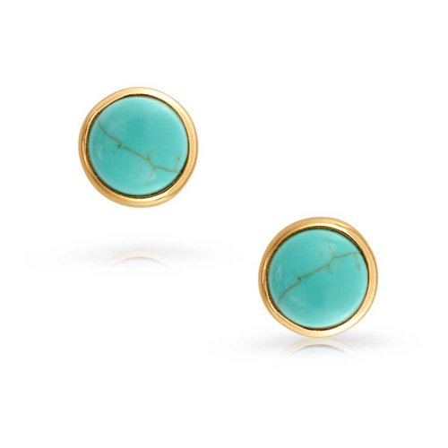 Perk up your accessories for the warmer months with a pair of turquoise stud earrings. These gorgeous Reconstituted Turquoise studs are nestled in gold plated sterling silver. These turquoise earrings also make wonderful pieces of birthstone jewelry, since turquoise is a December birthstone. Purchase these stunning sterling silver studs today.