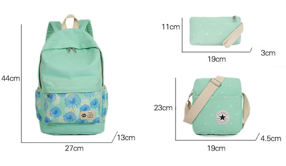 Name:RoyaDong Printing Backpack Set Women School Bags For Teenage Girls Canvas Chrysanthemum Prints Candy Color 2016 Mochila Rucksack
