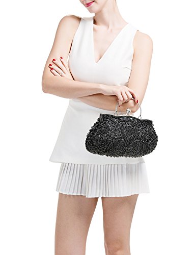 Product Description iToolai Satin Purse Evening Handbags Wedding Bag Beaded Sequins Clutch for Party Our Evening handbags are made of high quality satin material with fine workmanship. The beading and sequins are detail and color vibrant. The size of this purse is roomy enough for Iphone, small wallet, glasses, lipstick, powder,make up brush and other comestic you need to carry. The interior of this bag is nicely lined and a tiny pocket inside perfect for an ID and credit card. Your thing will be secure with the clasp and a long silver chain that can be attached to the purse to free your hands for a glass of wine or plate at the party. This bag works great for a wedding, evening party and other special occasion like school prom and military ball. Just Add to cart and enjoy your party time! 0
