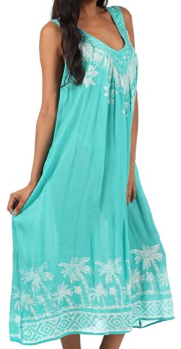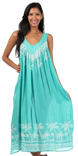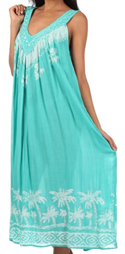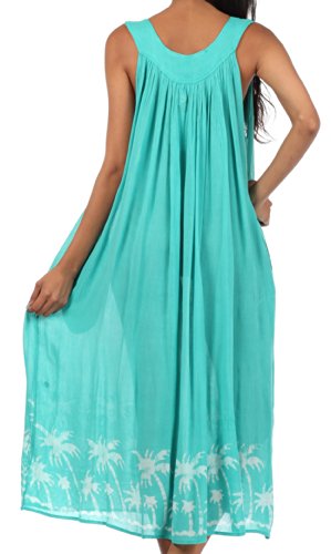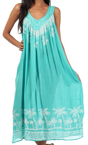 - Feature : Sakkas' sleeveless dress features flattering embroidered v-neck, palm tree tie dye design, relaxed fit and soft cotton fabric in beautiful colors. / Lightweight fabric and relaxed fit makes this dress perfect for warm weather! / One Size ( US Size 0 - 1X ), Approximate Length = 46" ( Measured Shoulder to Longest Hem ) / Hand Wash in Cold Water. Hang Dry. | Material: 100% Cotton / Imported