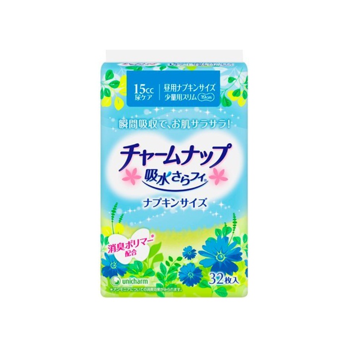 원본상품명: チャ?ムナップ 吸水さらフィ 女性用 15cc 少量用 32枚入 ?用ナプキンサイズ 19cm 【?い尿もれの方】