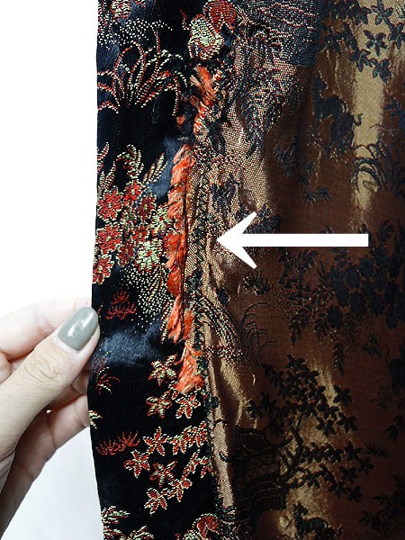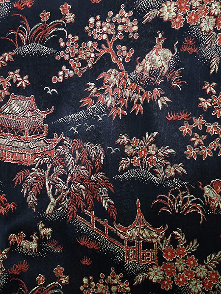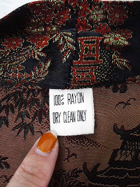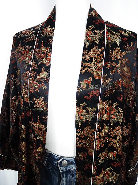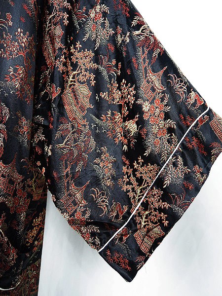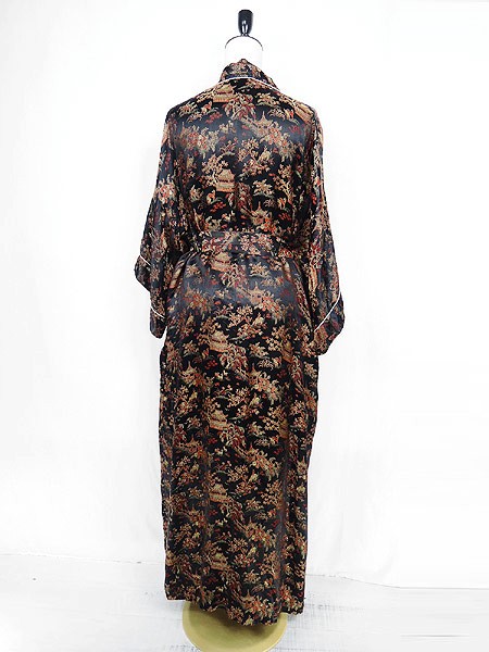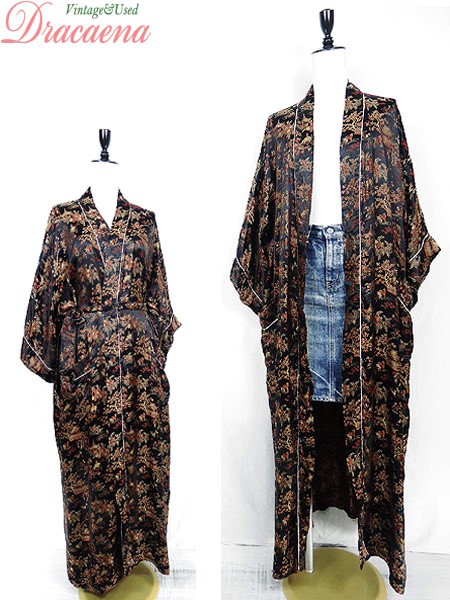 Ladies ブランド- カラー黒ベース・赤・金 メール便不可 コンディション★★★ 素材レーヨン 表記サイズ記載なし スタッフコメント共布ベルト、ポケット付き。 実寸サイズ 着丈 131 cm 身幅 60.5 cm 肩幅 67 cm 袖丈 26 cm ※ウエスト・ヒップ以外は平置き採寸