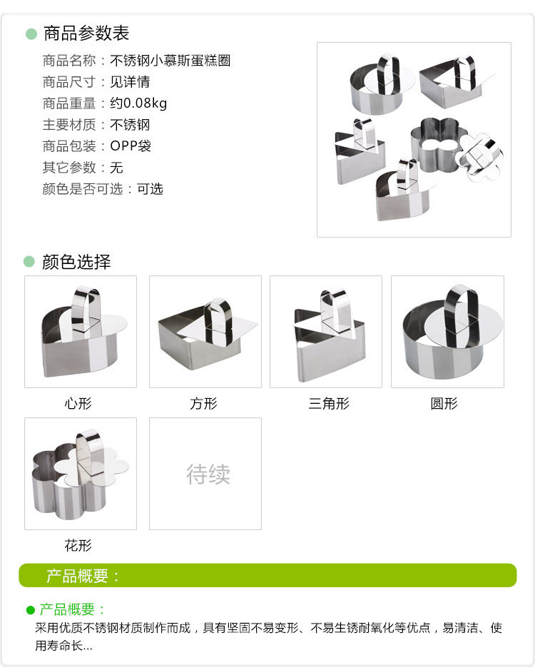 DIY烘焙工具不锈钢小慕斯蛋糕圈芝士蛋糕模具布丁煎饼干模具