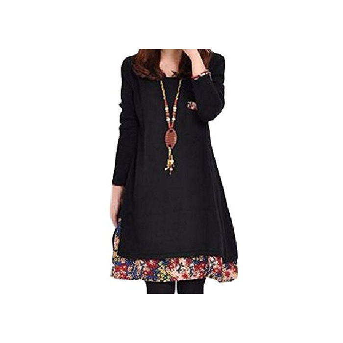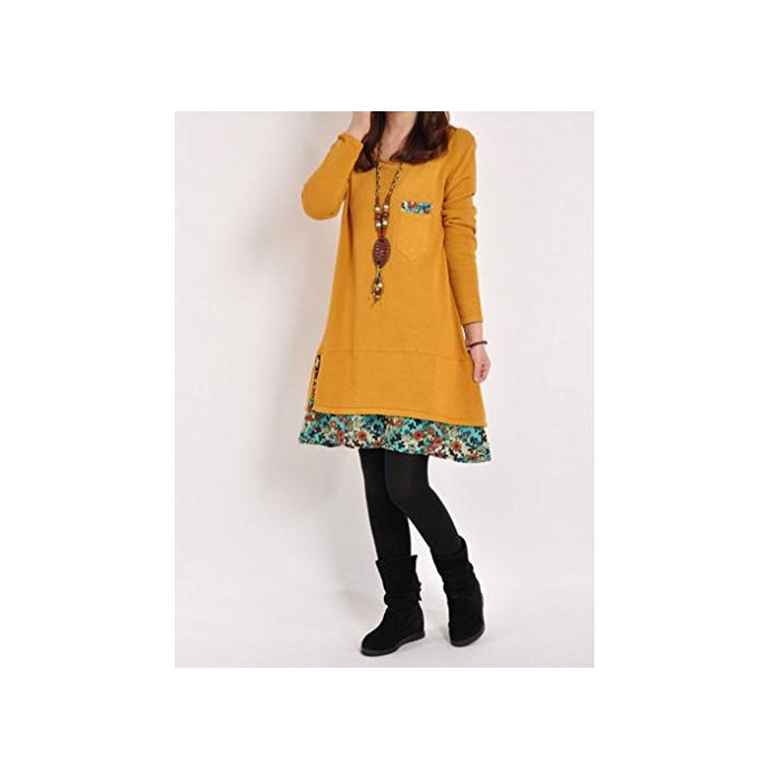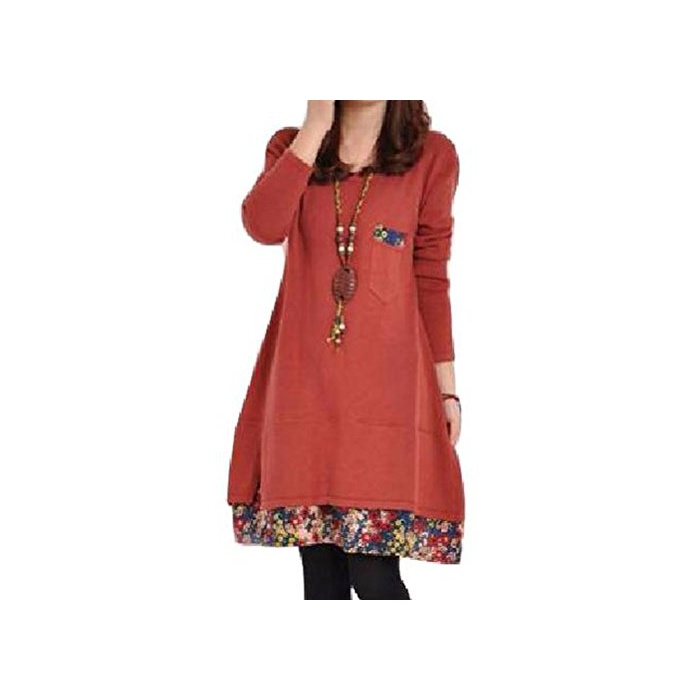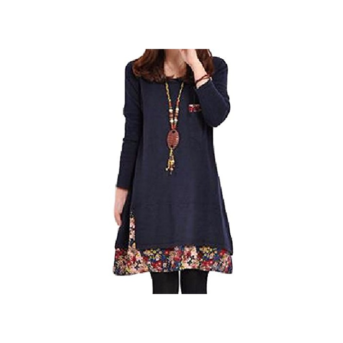 원본상품명: (ボヌル)BONHEUR aライン ワンピス チュニック レディス ワンピ 長袖 ひざ丈 ゆったり ブラック ネイビ レッド イエロ ロング かわいい きれいめ 大人 カジュアル 花柄