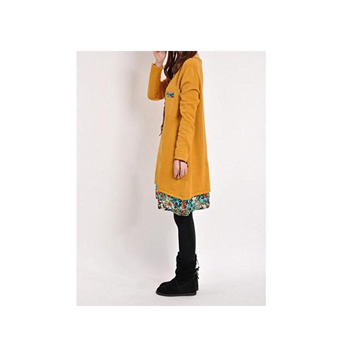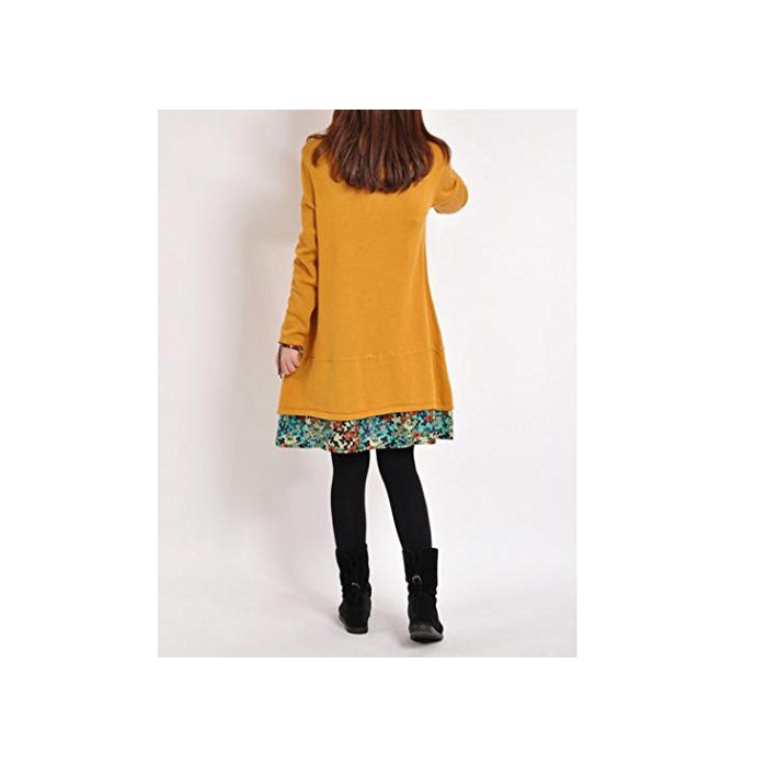 BONHEUR a라인 원피스 튜닉 레이디스 원피 긴 소매 무릎 길이 넉넉하게 블랙 네이비 레드 옐로우 롱 귀여운 예쁜 어른 캐주얼 꽃무늬